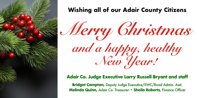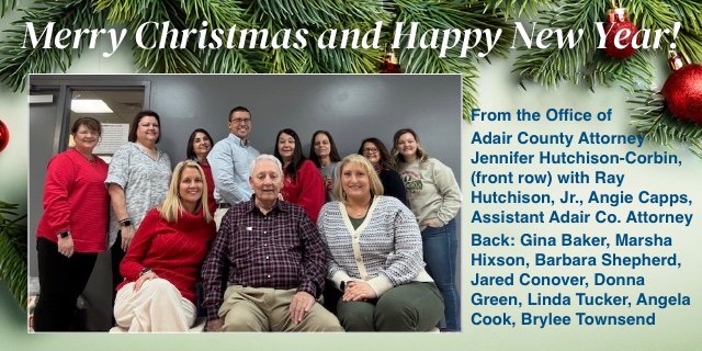 County Attorney holiday schedule From Gina Baker The office of Jennifer Hutchison-Corbin, Adair County Attorney and the Adair County Child Support Office will be closed on December 24, December 25, and December 26, 2025, for the Christmas holiday, and on January 1 and January 2, 2026, for the New Year holiday. Click here to share, print, or bookmark this article. 2025-12-22 20:12:04 | Comments | See topic Local Government