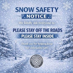 Columbia Police Chief Evan Burton asks everyone to honor this Snow Safety Notice asking everyone to please stay off the roads and stay inside.