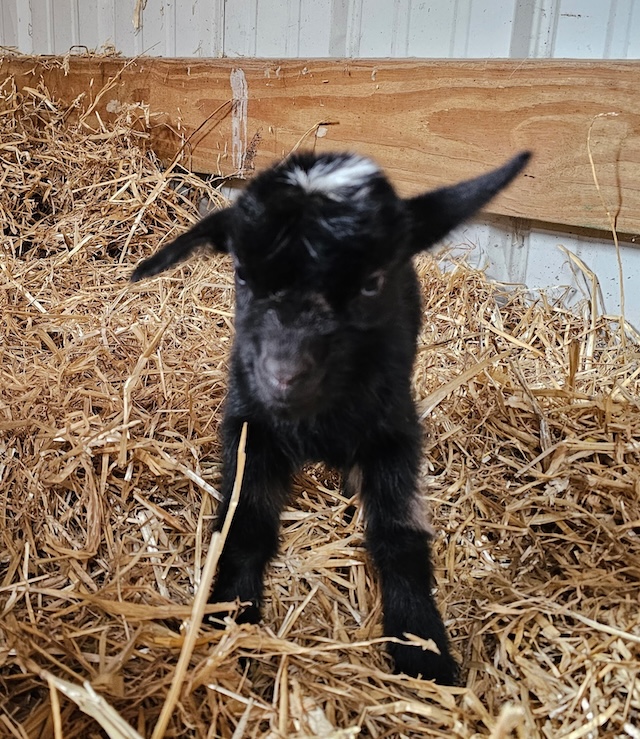 2026-04-08 - Central Kentucky - Photo by Donna Rieder. It's been a busy week at Donna Rieder's Clifty Creek Farm, with three new arrivals yesterday. Donna writes, "These three kids are Freckles, Floppy, and Fae. The mom's name is Precious. She was named that because she was a preemie and so tiny we weren't sure she'd make it. But she obviously did, and this is her second litter. Last year she had three boys!"