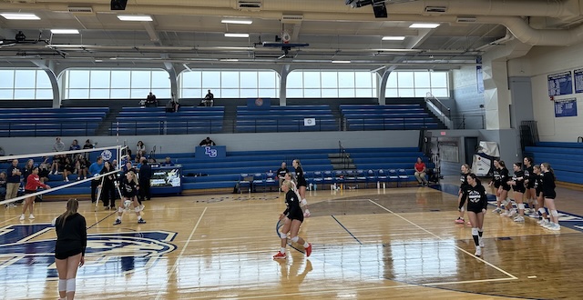 2025-10-26 - Hodgenville, KY - Photo by Trey Stephens. The Lady Indians Volleyball team is on the court preparing to face the Elizabethtown Panthers in the first round of the 5th Region Tournament hosted at LaRue County High School.