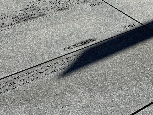 2025-11-05 - Frankfort, KY - Photo courtesy Kentucky Vietnam Veterans Memorial. Each name on the Kentucky Vietnam Veterans Memorial is precisely positioned so the shadow of the sundial's pointer touches each veteran's name on the anniversary of their death, creating a deeply personal annual tribute.