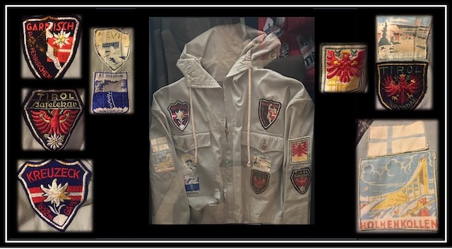 Harry Beard's old ski jacket, covered with patches from all the places where he used to ski while working in Europe.