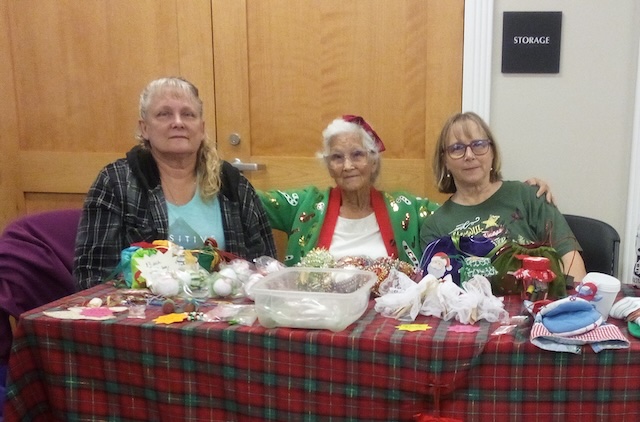 2025-11-23 - Columbia, KY - Photo from Shannon Steveson. L-R: Bridgett Powell, Betty Hawthorne, and Rhonda Froedge staffed the Bliss Club table at the annual Holiday Bazaar at the Extension Office on Saturday, November 22, 2025.