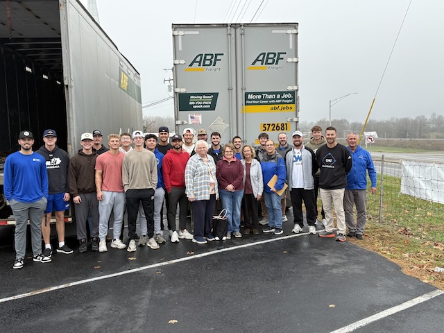 2025-11-19 - Columbia, KY - Photo courtesy Lindsey Wilson University. Several LWU coaches and athletes took time out of their schedule Wednesday morning to help load OCC shoeboxes and Samritians Purse cartons on to the pup trailers at the First Church of the Nazarene in Columbia, Kentucky.