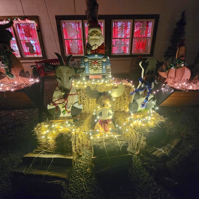 2025-12-18 - Gradyville, KY - Photo by Benisha Johnson. A closer night-time view of the extensive Christmas decorations at Happy Hour Acres Corner Store & Watering Hole in Gradyville.