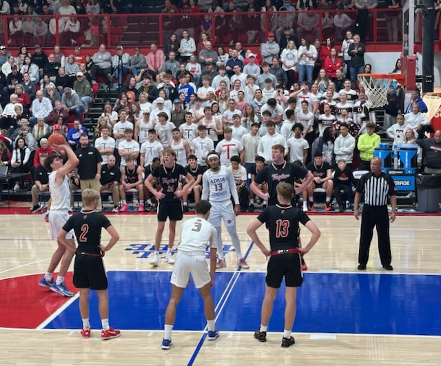 2026-01-10 - Columbia, KY - Photo by Trey Stephens. In the last matchup between the Indians and the Taylor County Cardinals (above), on Friday, January 2, 2026, a rocking John Burr Memorial Gymnasium played a major part in the Indians' thrilling 82-80 win. They'll face the Cardinals again on Saturday, January 10, 2026, in the 2A Fourth Sectional final, and Trey says, "the Indians could benefit greatly from a hyper Robe Dome filled with Indians faithful."