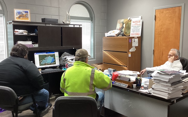 2026-01-23 - Adair County, KY - Photo by Bridget Compton, Deputy Judge, Adair County Fiscal Court. Adair County Judge Executive Larry Russell Bryant, at right, Road Foreman Barry Hamlett and Emergency Management Director Grant Loy, study national, regional and local weather patters in the developing winter storms headed our way. All personnel and equipment are in preparation for a fight against Mother Nature.