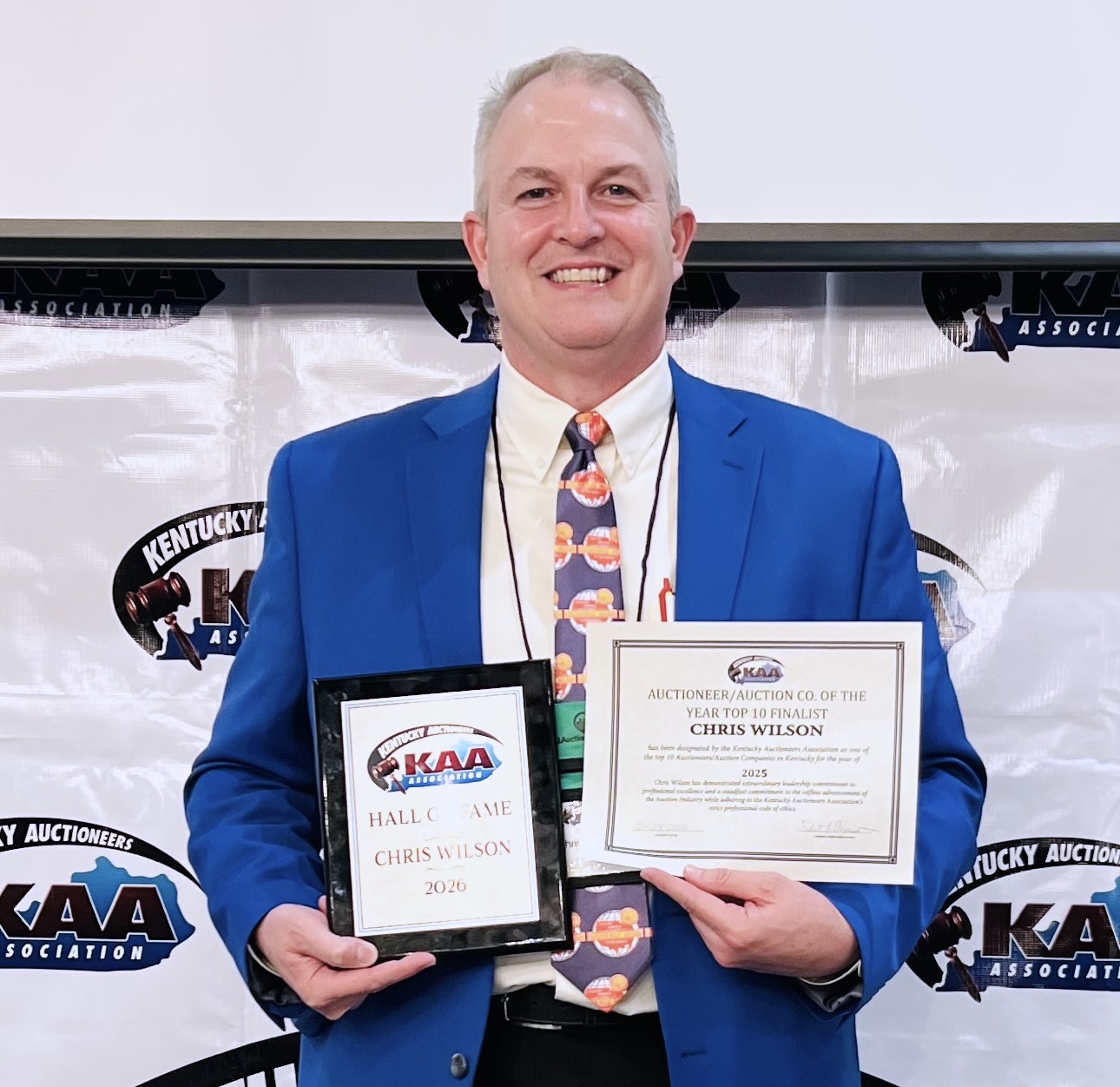 2026-01-28 - Bowling Green, KY - Photo courtesy Golden Rule-Wilson. Chris Wilson, Principal Auctioneer of Golden Rule-Wilson Real Estate & Auction, was inducted into the Kentucky Auctioneers Association Hall of Fame at the 2026 Kentucky Auctioneer's Association annual convention held this past weekend in Bowling Green, KY.