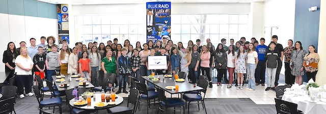 2026-04-05 - Columbia, KY - Photo courtesy Lindsey Wilson University. Sixth grade students and teachers from Clinton County Middle School gather in the Lindsey Wilson University Roberta D. Cranmer Dining & Conference Center on Thursday, April 2, 2026. The trip to the university, which was sponsored by First & Farmers National Bank of Albany, included a special performance of the musical review "A Grand Night for Singing" and in Cranmer Dining & Conference Center.