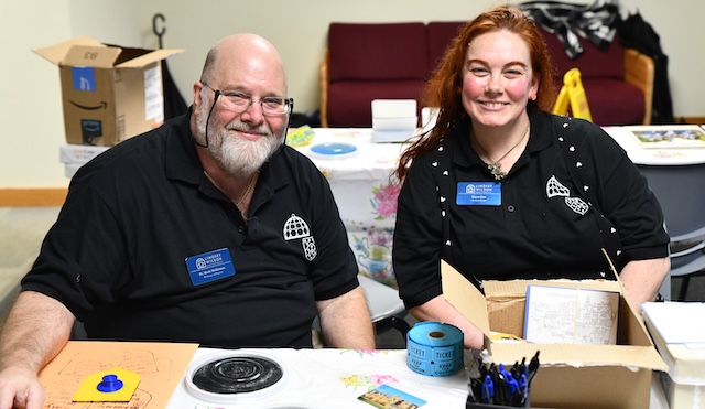 2025-10-30 - Columbia, KY - Photo courtesy Lindsey Wilson University. Lindsey Wilson University physics professor Mark McKinnon and Sierra Coe, Jim and Helen Lee Fugitte Science Center laboratory coordinator, helped organize the tour of Harlaxton College, a Victorian manor in England's East Midlands that is available for a semester-long study experience. The tour was held on Wednesday, October 29, 2025, in the J.L. Turner Leadership Center.