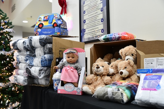 2025-12-12 - Columbia, KY - Photo courtesy Lindsey Wilson University. Some of the items members of the Lindsey Wilson University community donated to Operation Christmas Spirit. The items were collected on Thursday, December 11, 2025, in the Cralle Student Union Building by Columbia Mayor Pam Hoots and Columbia Chief of Police Evan Burton.
