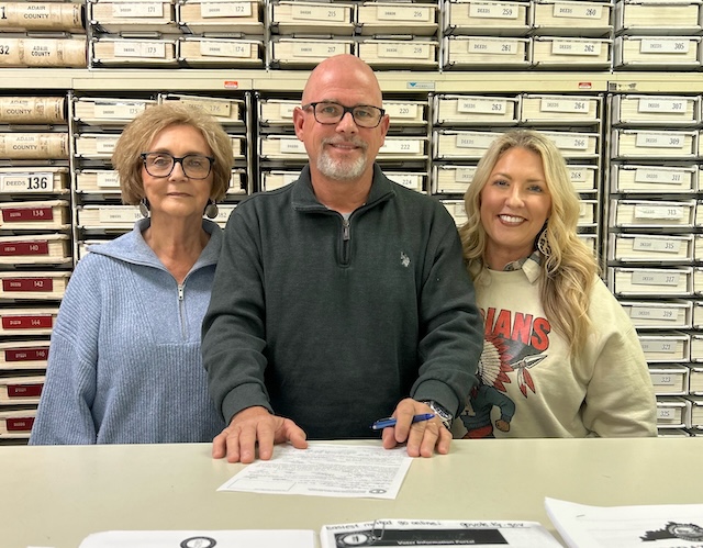 2025-11-14 - Columbia, KY - Photo courtesy . Daryl Flatt has filed for Magistrate District 2, Ozark and East Columbia. Pictured are Carolyn Taylor, Daryl Flatt, and Candice Flatt.