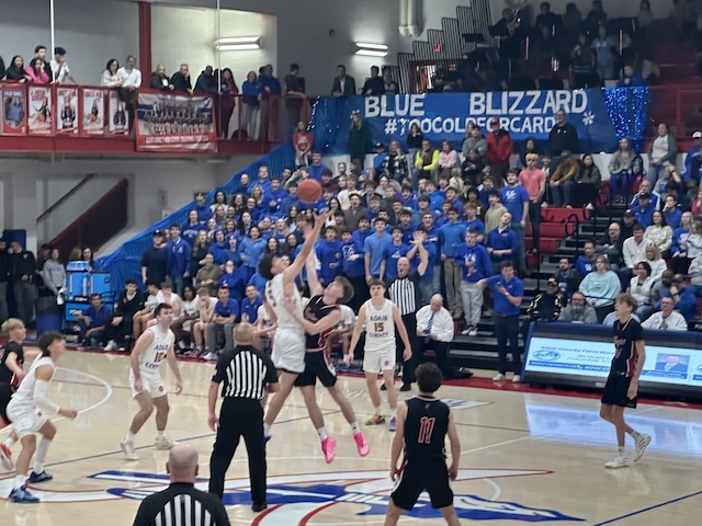 At halftime, Adair County trailed the Cardinals of Taylor County 44-36, with Tylin George leading the scoring for the Tribe with 13, followed by Dawson Gilbert with 12.