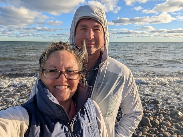 2025-10-28 - between Copenhagen and Aalborg, Denmark - Photo by Veronica Arnold. Veronica writes of her recent trip overseas, "We flew into Copenhagen and then drove north for a bit to catch a ferry, to shorten our drive time as we head further north. It's a bit colder here with lows in 30s and highs in 50s. When we saw the coast, we had to park, get out and walk a bit. It was cold but it was so cool to see a body of water I have never seen before. The shoreline was stony. Water was freezing, well not technically. With wind coming from the coast it feels colder I think."