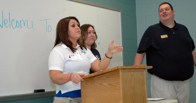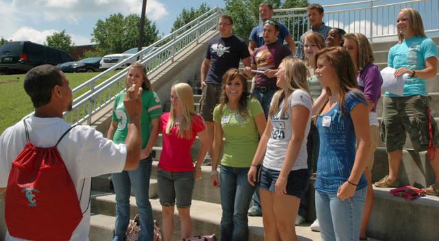 EDGE Day Gives LWC students Opportunity to kick off shoes Columbia hosts orientation for incoming fall semester freshmen at LWC with EDGE Day: for Education, Development, Growth, and Experience. June 4 and 5 session first; next will be July 24, 25, 2009 Click on headline for full story plus five photos By Duane Bonifer, LWC Director of Public Affairs COLUMBIA, Ky. - Lindsey Wilson College sophomore Elizabeth Goode of Somerset, Ky., told a classroom of incoming freshmen on Friday morning why she prefers to wear flip-flop sandals. And then the freshmen told her something about their shoes. The exercise was part of an introduction session Lindsey Wilson uses on EDGE Day to introduce students to their new classmates. "The idea is that they will talk about their shoes, which is pretty basic, and that will help introduce them to others," said Lindsey Wilson Director of Student Activities Bobbie Owen. Breaking the ice is a big part of an LWC EDGE Day. EDGE - which stands for education, development, growth and experience - is an orientation program for the college's incoming freshmen.More than 170 incoming freshmen attended Friday's EDGE Day, the first of three five-hour orientation days the college will hold this summer. But freshmen don't spend the entire time in a classroom. Following ice-breaking sessions, they go outside to participate in team-building activities that include untying a human knot and a song game."We get them out of the classroom and get them around campus," Owen said. "We do team-building activities with them. A lot of students find their roommates on an EDGE Day through the activities."While students break ice and build teams, parents and family members meet with college officials to learn about student life at Lindsey Wilson. Then following lunch in the Roberta D. Cranmer Dining & Conference Center, students and family members visit a series of stations in Biggers Sports Center. By the time they exit Biggers Sports Center, the freshmen have a class schedule for the 2009 fall semester, a parking permit and have completed paperwork necessary to enroll. "They are building those relationships now, then on opening weekend in August they will further solidify their relationships with several more activities and events," Owen said. "By the time the school year begins, they won't feel like strangers in a classroom." EDGE also helps demystify the college experience, Owen said."One of the questions we ask freshmen on an EDGE survey is whether they would be afraid to talk to a professor a staff member when they first get to Lindsey Wilson," Owen said. "Many of them tell us that they are because they often enter college with the pre-conceived notion that professors and staff members cannot be bothered with students. But on EDGE Day, we tell them that at Lindsey Wilson that's what professors and staff members are here for - they want to have contact with their students and they want to help them." EDGE Day also is an opportunity for incoming freshmen to meet upperclass students who share similar interests and backgrounds."When we assign students to an EDGE group, we go out of our way to look at their intended major and their extracurricular activities so that we can pair them with an EDGE leader with similar experiences," Owen said. "That makes it easier for freshmen to ask questions such as how to get involved at Lindsey Wilson." LWC's final two EDGE Days of the summer will be July 24-25. For more information, contact the Student Activities Office at info@lindsey.edu or (270) 384-8100. This story was posted on 2009-06-06 11:27:17