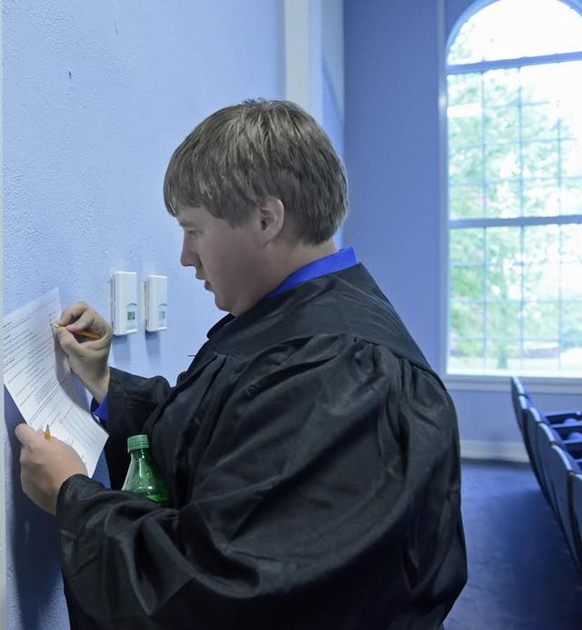 2014-05-11 - Biggers Sports Center, 360 Spickard DR, Columbia, KY - Photo by Duane Bonifer. Jared Davenport of Lawrenceburg, KY,completes the Lindsey Wilson College “Graduating Senior Survey” Saturday morning in V.P. Henry Auditorium before the college’s spring commencement ceremony in Biggers Sports Center. Duane Bonifer, Lindsey Wilson College Read More... | Comments? | Click here to share, print, or bookmark this photo.