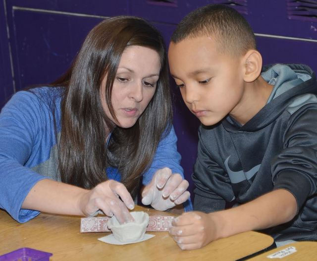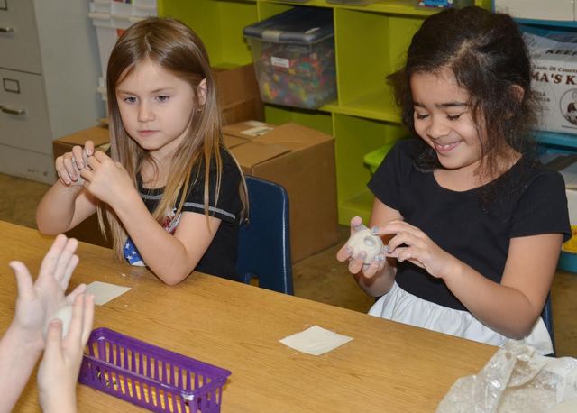 First-graders learn how to make pinch pots By Calen McKinney, Public Information Officer/Grant Writer Campbellsville Independent Schools (CIS), Campbellsville, KY Campbellsville Elementary School first-graders are making pinch pots. In Adrienne Hash's art classes, students are learning about how art can tell stories and help the viewer learn about other people. They are also learning how art can be functional, such as a pot carrying water. Hash told students about African pottery, in which people use their hands to shape their pots and then use them to cook and store their food. After their lesson, students made their own pinch pots. Students used their thumbs to pinch their clay and then shaped their pots. They then used different patterns to make designs on their pots. When the pots dry, students will decorate them with paint. This story was posted on 2016-02-04 15:23:56