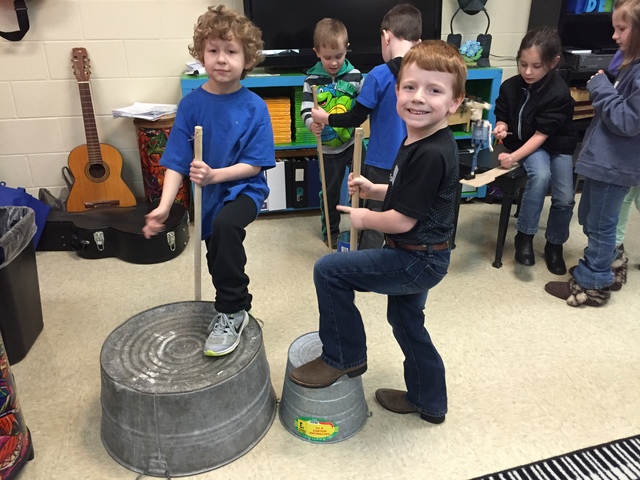 ACPC students participate in Appalachian Musical Playground Click on headline for full story photo(s) By Laura Marcum Students at the Adair County Primary Center recently participated in an Appalachian Musical Playground. Students had been studying about the Appalachian Mountains, the people, instruments, and traditional dance styles. During the Appalachian Playground students were able to move around to different stations and play with musical spoons, a washboard, guitar, dulcimer, homemade bass, and a Limberjack doll. They also were able to examine a bear skin and try out flat-foot dancing. A good time was had by all. Due to recent snow days it took a while for all of our classes to have a turn. All grades participated. Laura Marcum, the writer of this article and the photographer who took the accomanying photo(s), is the Music Teacher at Adair County Primary Center, 158 Col. Casey Drive, Columbia, KY 42728. This story was posted on 2016-02-24 16:47:37