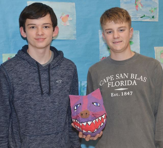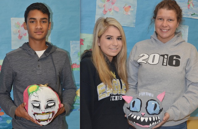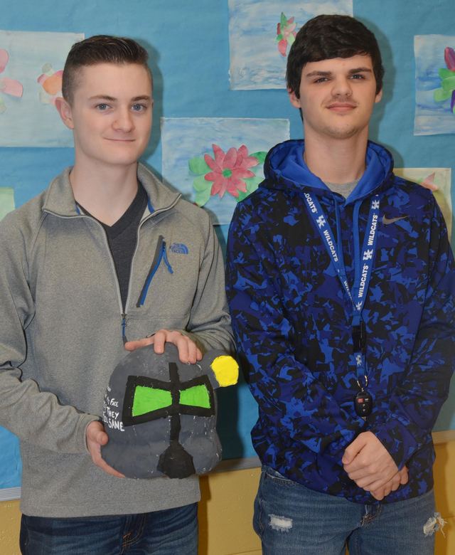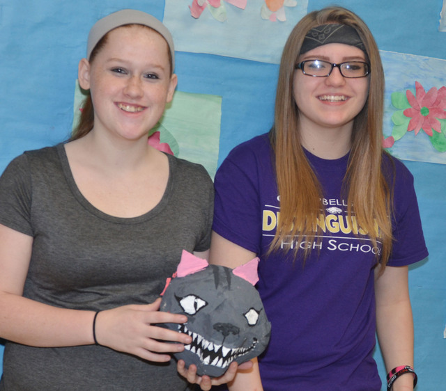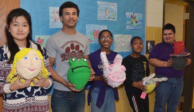 CHS students finish 3D art projects Students watch "Face Off," then do their own special effects contest Click on headline for complete story with photo(s) By Calen McKinney Campbellsville High School students have finished their 3D art projects. Students in Jo Ann Harris's art classes recently watched an episode of "Face Off," a reality television show that features a competition between special effects makeup artists. While watching the show, students learned about making special effects, but also about art careers. To put their new skills to the test, students then discussed Alice in Wonderland, which they study in their literature classes. After choosing a character from Alice in Wonderland, students went to work making their own 3D sculptures. Some students worked in groups, while others worked individually. The first step of the process was to cover balloons with paper mache. After their balloons dried, students shaped their sculptures and eventually painted them to look like their characters. They then added feathers, pipe cleaners and more to complete their sculptures. The goal, Harris said, was for those who see the finished sculptures to not know they started out as balloons. - Calen McKinney is Public Information Officer for Campbellsville Independent Schools This story was posted on 2016-02-26 05:11:03