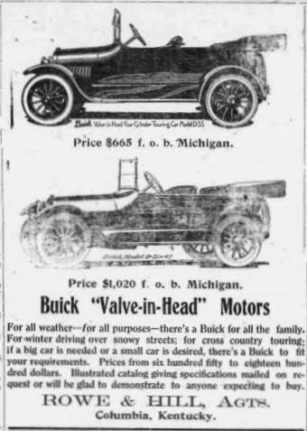 JIM: 100 years ago, reported in the AC News 20 Dec 1916 100 years ago: Of birthdays, barristers, and boarding; educators, autos, & entertainment; and sports, soldiers, shysters, sojourners, a life cut short, & sundry other items Click on headline for complete artickle, a fab-a-lus one. - ED By JIM All sorts of news dotted the front page of the shortened edition of the Adair County News dated December 20, 1916. (Since late 1904, the News had been an eight page publication. However, as owner C.S. Harris remarked, the price of newsprint had escalated from $54/ton in June 1916 to $130/ton in December, and "it may go higher before the drop comes." In response to the 240% increase in this direct cost, Mr. Harris some weeks earlier had dropped the number of pages from eight to four and the paper had gone to a seven-column format with smaller typeset.) Earlier in December, Adair County's senior member of the bar, Judge H.C. Baker, celebrated his 75th birthday and on the Sunday following, his daughters Mamie Jones and Sallie Baker prepared a "magnificent dinner" for the judge and a handful of his friends, a virtual who's who of Columbia's golden years set: Judge Rollin Hurt, Judge W.W. Jones, Mr. R.F. Paull. Mr. A.G. Todd, Mr. J.O. Russell, and Mr. John Ed Murrell. After the mid-day meal, "the afternoon was spent in social converse." One can only imagine the stories, laughter, and camaraderie this "magnificent seven" of Columbia shared in that long ago postprandial interlude. George Aaron, "a well-known educator of this county," announced his candidacy for School Superintendent, subject to the will of the people in the primary. Though Mr. Aaron, father of Maxine, Mary Ellen, Louis, and Oris, belonged to the Republican party, the fiercely Democratic News spoke well of him, saying (among other things), "He holds a State certificate, as evidence of his qualifications." (Come the primary, the people willed otherwise. Challenger P.P. "Pleas" Wesley carried the day; incumbent Tobias Huffaker placed second; and Mr. Aaron came in a distant third.) The basketball team of the Columbia Graded and High School, accompanied by Prof. Sweets "and a goodly number of rooters," had departed town on Monday the 18th for a four-game road trip, to-wit: Burnside, Somerset Lawrenceburg, and Danville. Unfortunately for those with an interest in such matters, these games drew no additional attention in subsequent issues of the paper. After a year's sojourn in the Land of Lincoln, the Melvin Blair family had returned to live in their Glenville home. Opined the News, "Here in Adair, where the broom sedge, sassafras, dogwood, and men grow, and the best of water gushes constantly from the fountains, is a mighty good place to live." The J.D. Eubank family, however, feeling the tug of greener lands, planned to depart Columbia that week to take up residence in Cincinnati. The News, while regretting Columbia's loss, said, "We commend him and his family to the new acquaintances they may form..." And too, the paper noted one other departure. Twenty-two year-old Luther Aaron, a native of Esto, Russell County, but lately of Columbia, had heard the siren song of a silver-tongued US Army recruiter and departed the previous week for examination in Louisville prior to induction. A year later, young Antle was serving in France (Co., A., 36th Infantry, A.E.F.) and in July 1918 he suffered a battle wound but returned to the front after a month's stay in the hospital. A note in late 1919 stated he served in France for 27 months, seeing action in several battles. The report also said he soon would released from the army. On a sad note, a Miss Roberts of the Dug Hill section, aged 17 years, had been shot several days earlier and died shortly thereafter. The News reported it as an tragic intra-family accident but cryptically added, "There are other reports in regard to the shooting..." Moss & Chandler of Lindsey Wilson Training School wanted to buy "large, fat hogs;" T.L. Upton of Glensfork had three brood mares (two in foals by jacks) for sale; the sisters Trabue wanted to rent out their farm along with "one tenant house, and rooms in the house;" and yet another front page classified ad informed readers, "Two young ladies can secure board at the [Burkesville Street] home of Mrs. Kinnie Murrell from the first of January until the schools close." Two other front page "cards" beckoned to the eye of the careful reader. One, tucked way at the bottom of the page, stated in its entirety, "Read the Paramount Theater advertisement. Big show coming." The other, a few lines above, mentioned that "Rowe & Hill, automobile dealers have an ad in to-day's paper. Call and see them if you are contemplating buying a machine." Each of these ads appeared on page four. The one for the Paramount Theater bannered across the full width of the page at the top. The offering for Thursday, December 21th "The Yankee Girl") and Saturday, December 23th ("The Masqueraders") book-ended the much larger space -- half the banner -- allotted to details of the "big show." On the evening of December 28th, the spectacular 1915 photoplay "Carmen," would be shown at 6:30 and again at 8. Geraldine Farrar, billed as "the World's Greatest Soprano and Grand Opera Star" reprised from the stage her starring role. This was the era of silent movies, but the billing promised, "Special music from the opera," method of delivery not noted. (The New York Times movie critic, in a review published on November 1, 1915, gave glowing kudos to Ms. Farrar in her screen debut (as did nearly all other reviewers) but of the movie itself, he groused, "Also it is bold, bald, and in dubious taste. Many portions of the film are successive pictorial studies of physical passion, and it is small wonder that in some quarters the much belabored censors winced." This movie helped launch the careers both of its young director, Cecil B. DeMille, and of Jesse L. Lasky, Sr., a founding member of Paramount Pictures.) In ord