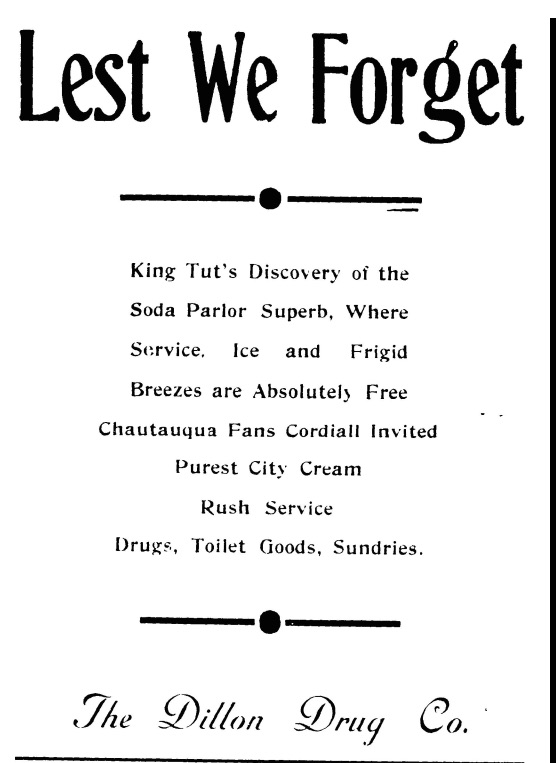 Click on headline for complete story By JIM By the early summer of 1923, the Great War had been over almost five years, women in the United States had full suffrage, Prohibition and speakeasies uneasily co-existed, increased wages were increasingly giving rise to a consumer society, and America roared. In Adair County, however, the ebb and flow of life continued at its accustomed pace, punctuated by the occasional scofflaw, blackguard, gun toter, or moonshiner. Adair County celebrated the 4th of July in style in 1923 In early July of that year, with the late war still on the minds of many and dozens of veterans in residence, Adair celebrated the 4th in style with various gatherings and presentations across the shire, perhaps most notably in Columbia, where "the Fair Grounds were full of patriotic citizens" assembled for a picnic, horse (and mule) races, and of course, the music provided by the Liberty brass band, that group delightfully discoursing sweet melodies throughout the day. Host of party in the woods, with 'Band of Indians' drew large crowd Elsewhere on that long ago 4th, "a large crowd gathered" in B.G. Redman's woodland and the affair was, of course, enjoyed by all present. "We have a band of Indians [likely a reference to Romani] in the County and they entertained at the Redman place." ("B.G. Redman," one of three Republican candidates for the state legislature in the upcoming primary, possibly referred to Beauregard Redmon, who resided near Garlin. In the August primary in Adair County, H.T. Baker outpolled him 649-140.) Crowed the News in aggregate about the meetings across the county, "Moonshine was not in evidence." Chatauqua here in full force Friday, July 6th & media for Edison machines arrived The Chautauqua arrived in full force on Friday, July 6th and by the time the News went to press the next week, "each day's program has been splendid. . ." Schools were set to open on the 16th and Columbia merchant H. (Herb) Taylor announced to the owners of Edison Machines that he had just received into stock no fewer than one thousand new phonograph records, available at thirty-five cents each. The same edition of the paper also carried an ad for Mr. Taylor's line of gents' clothing and another for his shoe repair service. First National Bank was undergoing complete renovation Elsewhere on the Square, the First National Bank, perhaps experiencing a bit of envy over the Bank of Columbia's recently constructed building, was in the early throes of complete renovation, inside and out. The financial institution soon moved its operation to quarters in the News building to afford contractors maximum accessibility and returned to its updated digs in September. Dillon Drug Co., succeeded Russell & Taylor in the pharmacy business The Dillon Drug Co., advertised in the accompanying image from the July 23, 1923 paper, had succeeded the young firm of Russell & Taylor (Dr. C.M. Russell & Herb Taylor) not quite a year earlier. Mr. G.W. Dillon, the owner, was a registered pharmacist, as was his son, Mr. Rich Dillon. In the spring of 1930, the former gentleman's widow sold the enterprise to Dr. Thomas C. Brown, who moved from Campbellsville to Columbia to run the operation. (In the manner of the day, Mr. Brown, a pharmacist, was accorded the honorific "Dr.") This story was posted on 2018-07-08 05:36:16