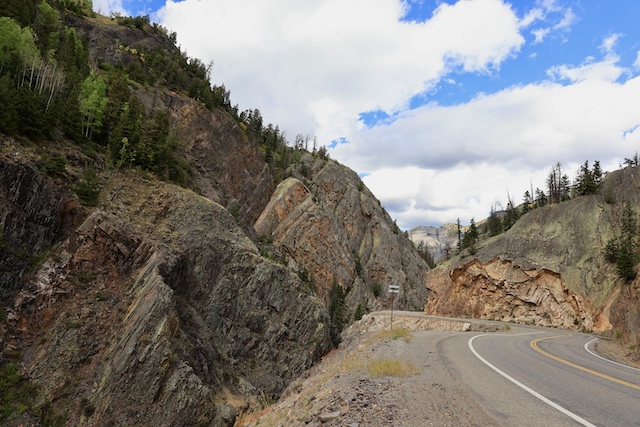Wikipedia says, "The twelve miles south of Ouray through the Uncompahgre Gorge to the summit of Red Mountain Pass gives the highway its name. This stretch through the gorge is challenging and potentially hazardous to drive; it is characterized by steep cliffs, narrow lanes, and a lack of guardrails; the ascent of Red Mountain Pass is marked with a number of hairpin curves used to gain elevation, narrow lanes for traffic--many cut directly into the sides of mountains." (Wikipedia).