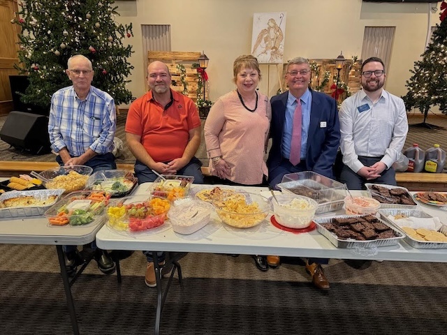 United Methodist Church leaders in the South District gathered at Lindsey Wilson Sunday afternoon for a planning session for the new year. Refreshments afterward were served courtesy of Jamestown UMC Pastor Dennis Kiser, Columbia UMC Pastor Ryan Boatright, and Emery Chapel UMC Pastor Richie Coomer. Pictured at the event, from left, are: Richie Coomer, Brian Turner, Emery Chapel Associate Pastor and chef, Marian and Dr. Jay Smith, District Superintendent, and LWU Campus Chaplain Tyler Brumfield.