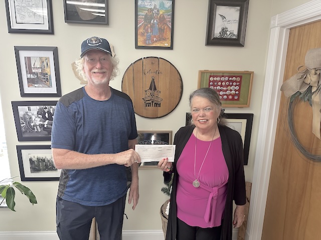 2025-07-13 - Columbia, KY - Photo from Trey Stephens. Charles Grimsley of the Adair County Fair Board accepts a gift of $5,000 from the City of Columbia to the Adair County Fair. The gift was approved unanimously at the July 7, 2025, City Council meeting.