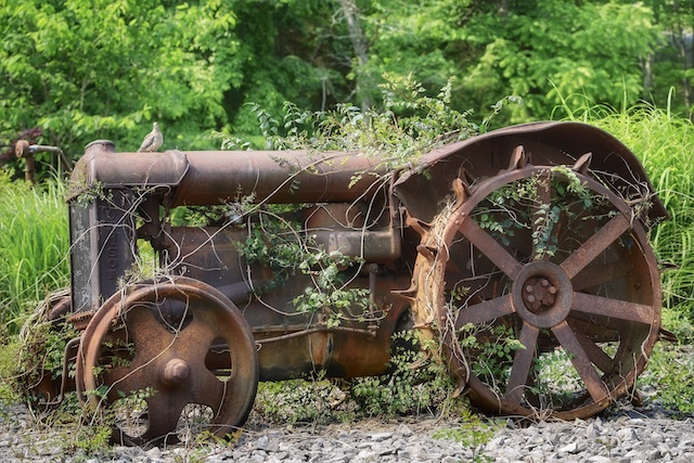 2025-07-09 - Adair Co., KY - Photo by Robert Ellis, robertelliswoodworking.com. Robert writes, "This photo was originally deleted and was hanging around in the deleted folder on my iPad. While taking a second look before final deletion I spotted this Mourning Dove sitting on the tractor; first time (really) seeing it. Since I'm very fond of doves, I retrieved the photo to keep permanently."