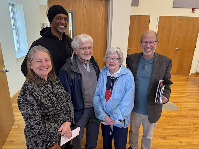 2025-10-20 - Columbia, KY - Photo by Linda Waggener, ColumbiaMagazine.com. Dr. Gerald Chafin, at right, LWU music professor and Director of Church Relations, was 'key'ed-up' before and after Sunday's Piano Extravaganza! The sounds that filled Slider Hall, especially that of two Steinway pianos being played by four pianists at the same time, kept everyone cheering. With him, from left, were: Jackie Montgomery, business student Xavier Williams and George and Vonnie Kolbenschlag.