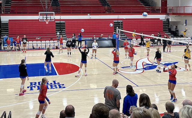 2025-09-18 - Columbia, KY - Photo by Trey Stephens. The Lady Indians warming up to face off against the Campbellsville Lady Eagles in a home stand that could give the Lady Indians a leg up in the 20th district regular season race.