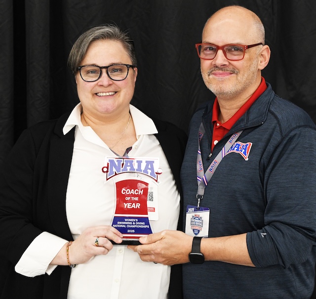 2025-09-19 - Columbia, KY - Photo courtesy Lindsey Wilson University. Lindsey Wilson University swim coach Alicia Kemnitz said that her teams' recognition for their performance in the classroom during the 2024-25 school makes her "proud that our athletic department encourages and celebrates true student-athletes, where doing well in the classroom and earning a degree is the main goal."