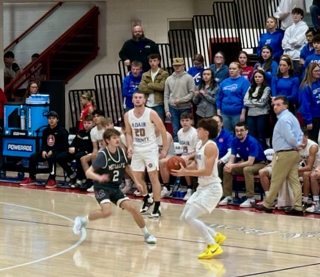 ACHS Senior Isaiah Cochran lays it in late in Adair County's dominating 87-49 win over Metcalfe County on Saturday January 25, 2025.