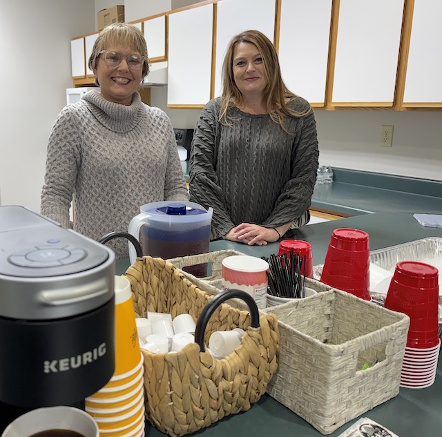 2025-01-20 - Columbia, KY - Photo by Linda Waggener. Fiscal Court staff members Benisha Johnson and Bridget Compton served the meal provided by Adair County Judge Larry Russell Bryant at the January meeting of the Columbia Adair County Chamber of Commerce, held on Tuesday, January 14, 2025, in the Chamber basement. The meal was catered by Melissa Murray of Adair County.