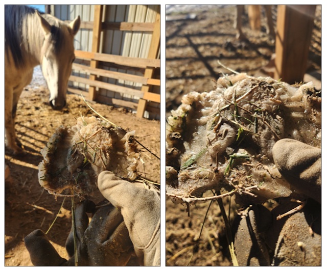 2025-01-21 - Fairplay, KY - Photo by Veronica Arnold. Veronica writes, "From the compacted snow and ice, these snow shoes can be found around the barn. The horse's foot does get warm from movement and sheds the snowshoe. What you can see is the imprint of his rubber boots. Those horse lovers usually find these 'snowshoes' interesting. LOL and even work to self-clean the horse's hooves! Bonus!"