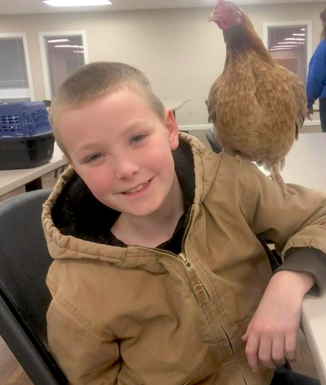 2025-01-15 - Columbia, KY - Photo by Tony Rose. Riley Janes, Adair County 4-H member, age 9, brought his chicken, Summer, to this week's meeting of the Rabbit/Poultry Club at the Adair County Extension Office. More delightful pictures from the meeting can be seen on the Facebook page of the Adair County Cooperative Extension Service.