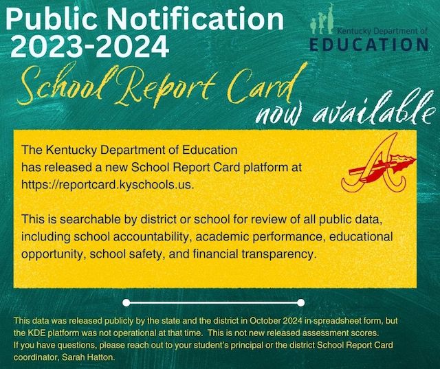 2025-01-15 - Columbia, KY - Photo from Sarah Hatton. The above graphic is required public notice for the school district of the state release of the new School Report Card platform. District and school information is now available at https://reportcard.kyschools.us.
