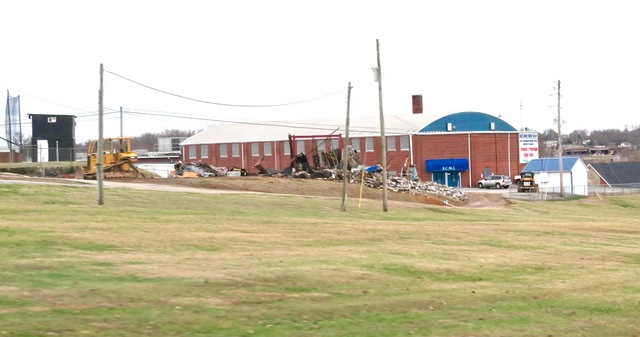 2017-01-18 - J.T. Coomer Building, 384 Gen. John Adair Drive, Columbia, KY - Photo by Linda Waggener, ColumbiaMagazine.com photo(c). The old bus garage was virtually on the ground, Tuesday Evening, January 17, 2017.