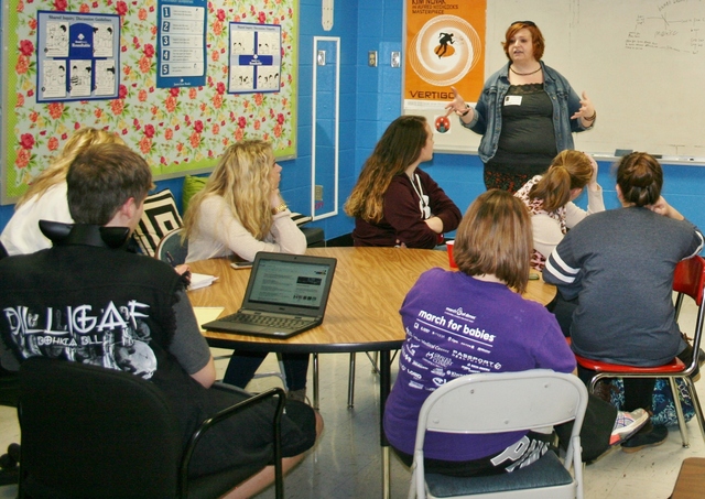 2017-01-18 - Adair County High School, 526 Indian Drive, Columbia, KY - Photo Wes Feese, Media Relations, Adair County Schools. Alex Mucker (standing), the senior regional director of the Kentucky YMCA Youth Assembly, spoke to Adair County Gifted and Talented students Tuesday, January 17, 2017 about the upcoming Kentucky United Nations Assembly. - Wes Feese