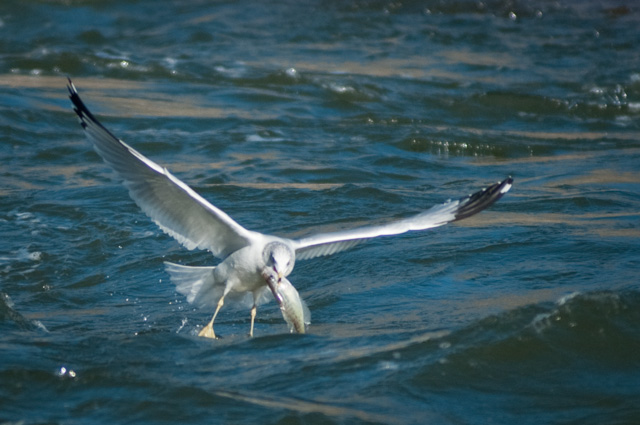 2017-01-17 - Taylor Co., KY - Photo by Pen. A gull pulls a fish from the waters of the spillway below Green River Dam.