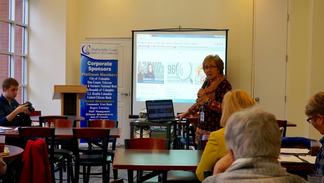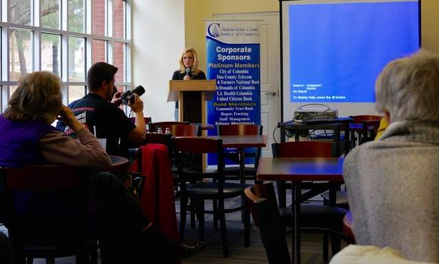 2017-01-14 - LWC Cranmer Dining Center - Photo by Linda Waggener, columbiamagazine.com. Jelaine Harlow, Health Educator 3 with Lake Cumberland District Health Department, shared a Community Health Assessment analysis for the ten counties in the district called "A Closer Look at Lake Cumberland." She gave a brief tour of the LCDHD website with information about the region's statistics which she pointed out "affect all other areas of our economy." Adair ranks 48th among Kentucky's 120 counties.