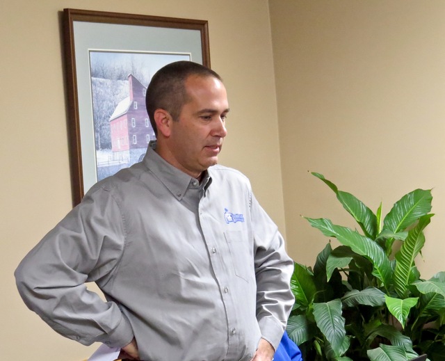 2017-01-13 - CAUD, 109 Grant Lane, Columbia, KY - Photo by Ed Waggener, Columbiamagazine.com(c) . Jim Thompson, majority owner of Kentucky Engineering Group, LLC, outline the scope of a survey he will conduct for Columbia-Adair Utilities District at the utilities regular 2nd Thursday session, Thu 12 Jan 2017. He was formally awarded the contract to conduct the survey on a motion by Member Mike Newton and Treasurer and Board Member David Jones, and received a unanimous voice vote approval. The action was one of several major actions at the meeting. Kentucky Engineering, LLC, founded in 2009, is located at 161 N Locust Street, Versailles, KY. - EW