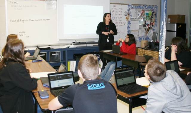 2017-01-12 - Adair County Middle School, 322 Gen John Adair Drive, Columbia, KY - Photo by Wes Feese, Media Relations, Adair County Schools. Sarah Antle instructs students on the day's assignment Wednesday, January 11, 2017, at Adair County Middle School, which the students will do sans pencil and paper. Google Chromebooks and dry erase boards are the primary tools of the trade in Antle's classes. - Wes Feese