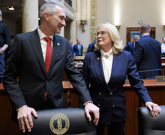 2025-01-08 - Frankfort, KY - Photo courtesy LRC. The 2025 Regular Session kicked off in Frankfort on Tuesday, January 7, 2025. Above, Senate President Pro Tempore David P. Givens, R-Greensburg (left) speaks with Sen. Robin L. Webb, D-Grayson, after the start of the session.