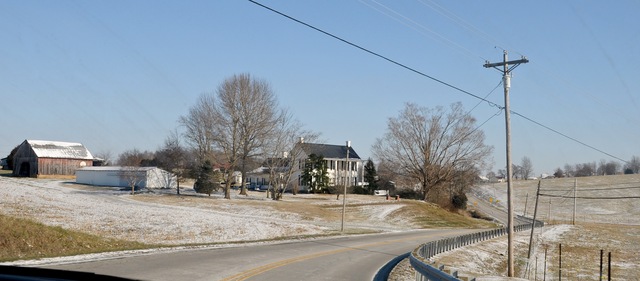 Beautiful home and fertile, loved and cared for farmland and a welcoming roadway greet the eastbound traveler going into Garlin, Adair County, KY - prettier still with a light skiff of snow on Saturday, January 9, 2017. - EW. For a tiny bit more on Garlin, see: Wikipedia, Garlin,_Kentucky