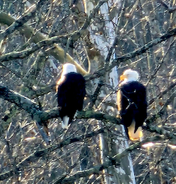 Darla Burris shared this special moment from her trip with Donnie to Bowling Green over the weekend. She writes, "At the Adair County / Metcalfe County line one of these Eagles was by the road the other one was in the tree. The one by the road flew back to the tree, quite the unusual sight."