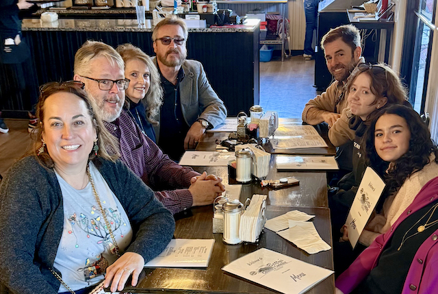 2025-01-02 - Columbia, KY - Photo by Little Bit at Betty's Country Cooking. To every writer, photographer and sponsor shaping the spirit of Columbia Magazine every day, the Waggener clan sends deepest gratitude and best wishes for a happy and healthy New Year! From left in this picture are: Amy and Pen, Jane Todd and Mark, Tom, Matilda and Hailey.