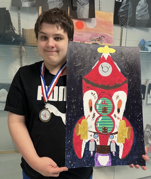 Russell Glass was awarded 2nd place in his category at the 2025 Ky Art Educators Association Conference this past weekend, held at Bellarmine College in Louisville. His teacher, Adair County High School art teacher Cayce Davenport, attended the conference where art educators from all over the state came together for visual art professional development and showcase their students' works.