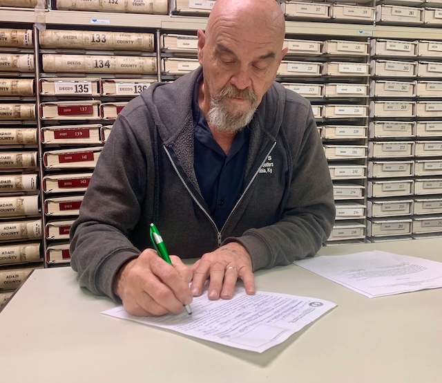 2025-11-25 - Columbia, KY - Photo courtesy Donnie G. Curry. Donnie G. Curry, above, files his paperwork to run for the office of Magistrate for District 1 in Adair County.