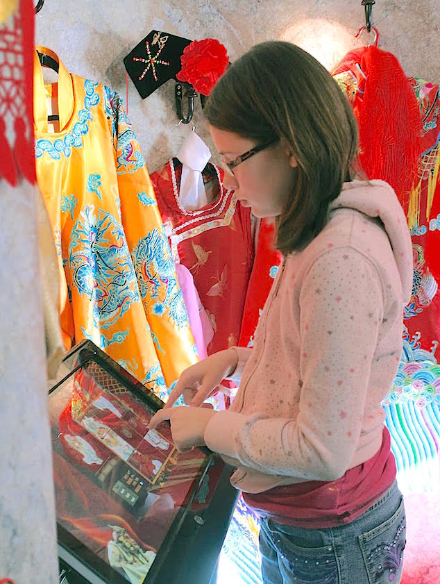 2016-03-16 - ACES, 870 Indian Drive, Columbia, KY - Photo by Shamarie Harper, Adair County School District Media Coordinator. Ashley Perkins shown here interacting with the touch screen information center for the costumes area of "The Chinese Cultural Experience" sponsored by the Confucius Institute based at Western Kentucky University that visited the Adair County Elementary School today. - Shamarie Harper